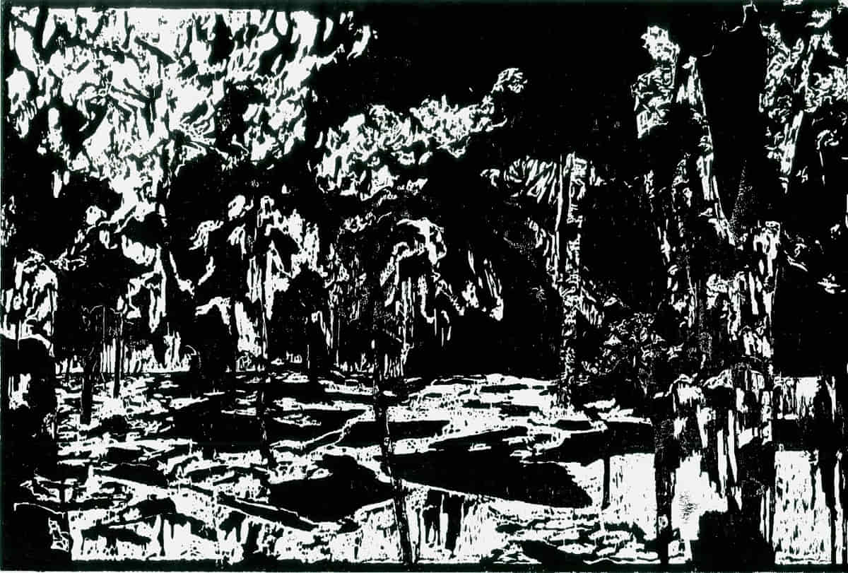 Bereits während ihres Studiums entwickelte Maria Salmanian „eine besondere Faszination für die Welt der Bäume“. Als künstlerisches Gestaltungsmittel wählte sie neben Malerei und Zeichnung vor allem die Technik des Holzschnittes. Das Wahrnehmen, Reflektieren und Dokumentieren von Baum und Wald manifestiert sich dann in oftmals auch großformatigen Holzschnitten als abstrahierte Kompositionen.