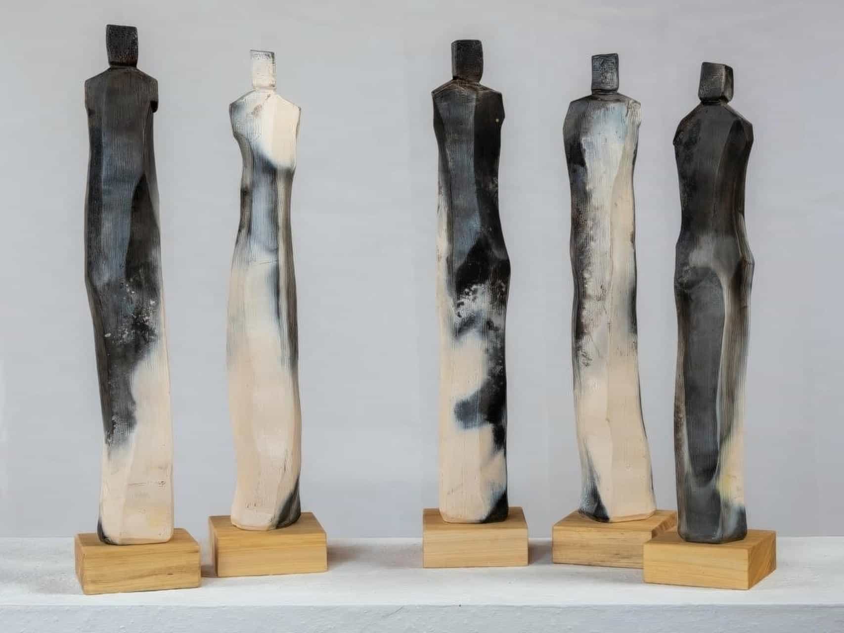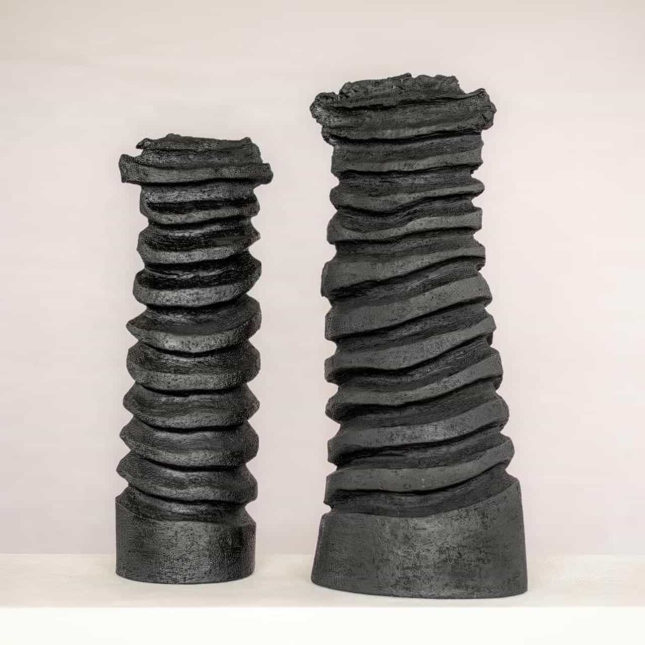 Die Urgewalt des Rauch- und Kapselbrandes bestimmt das Erscheinungsbild dieser Tonskulpturen.